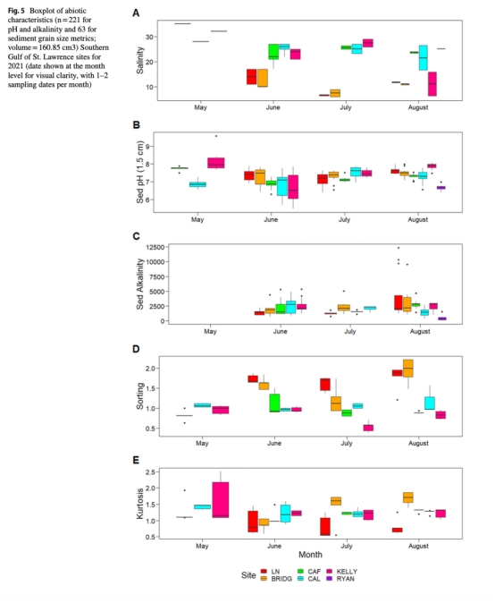 酸化熱點檢測:在芬迪灣站點RH,沉積物pH在2021年顯著下降(圖4),可能與微生物活動或有機質分解導致的局部酸化相關。