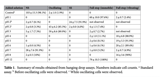 MTB在不同pH梯度下的運動方向(NS/SS)、振蕩頻率、停止行為(表1)。