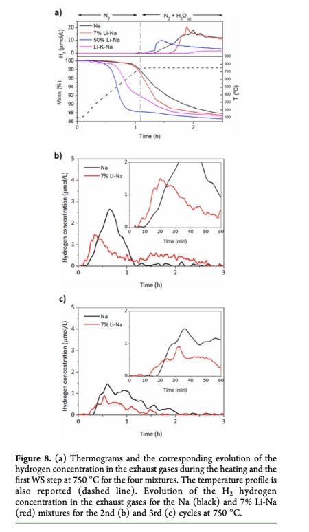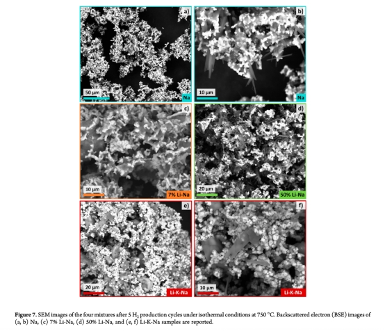 動(dòng)力學(xué)分析:通過(guò)氫氣釋放時(shí)間曲線(如7% Li-Na在第二/三循環(huán)中氫峰前移,圖8b-c),揭示熔融碳酸鹽促進(jìn)離子擴(kuò)散的瞬態(tài)效應(yīng)。
