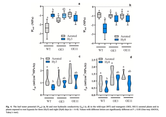 轉基因植株葉片水勢(Ψleaf)和根水導度(Lpr)在低氧下保持較高水平。