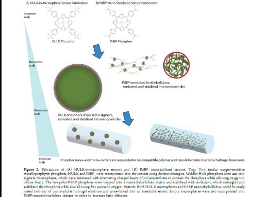 使用兩種氧敏感磷光體(HULK和PdBP),分別通過微球封裝(HULK-in-microspheres)和納米纖維網(wǎng)絡(luò)穩(wěn)定(PdBP-in-nanoethylcellulose)。