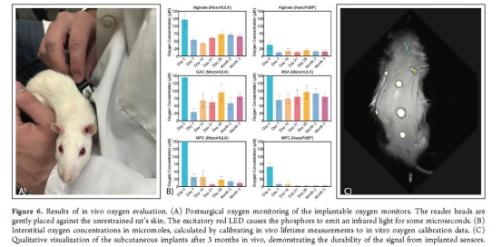 意義:驗證傳感器在體內(nèi)長期監(jiān)測氧濃度的能力,為臨床應(yīng)用中監(jiān)測組織氧水平(如缺血、傷口愈合等)提供依據(jù)。