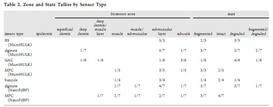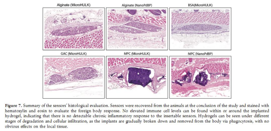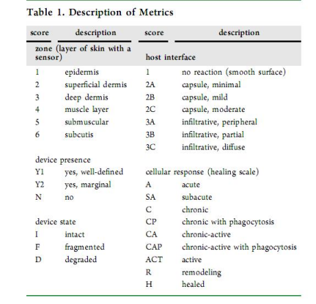 評估傳感器的生物相容性、降解狀態(tài)和宿主反應(yīng)(圖7、表1-3)。