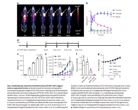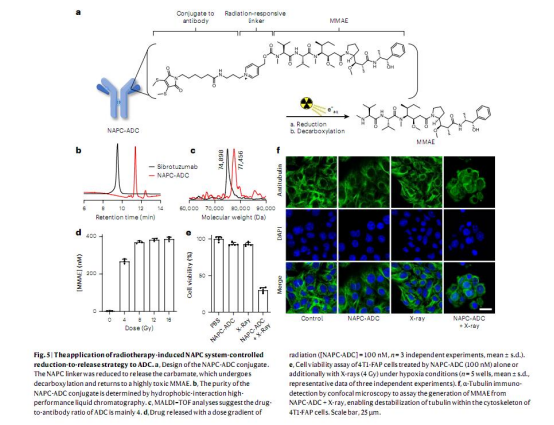 ADC構(gòu)建:將NAP保護(hù)基整合到靶向FAP的ADC中(sibrotuzumab-NAPC-MMAE),通過(guò)放療激活釋放毒素MMAE(圖5-6)。