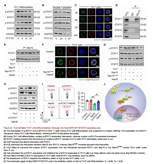 H?S通過硫化Sep15C38調(diào)控STAT1/STAT3磷酸化,抑制Th17分化(圖5, 6)。