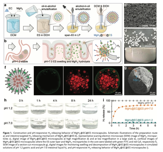 成功開發(fā)具有核殼結(jié)構(gòu)的腸道靶向控釋MgH?微膠囊(MgH?@EC@ES),實現(xiàn)口服后結(jié)腸局部高濃度、持續(xù)性H?釋放。