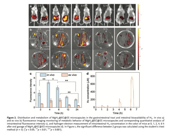 研究意義:直接證明微膠囊在目標部位(結(jié)腸)實現(xiàn)了高濃度、持續(xù)性的H?遞送,解決了口服MgH?粉末或富氫水在腸道H?生物利用度低的關鍵問題。該數(shù)據(jù)是驗證"腸道靶向高效遞氫"核心假設的直接證據(jù)。