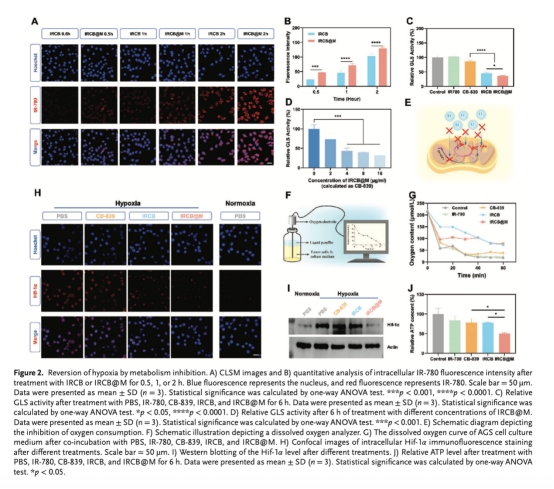 溶解氧實時監測(丹麥Unisense電極):IRCB@M處理組氧消耗速率顯著降低(圖2G如下)。