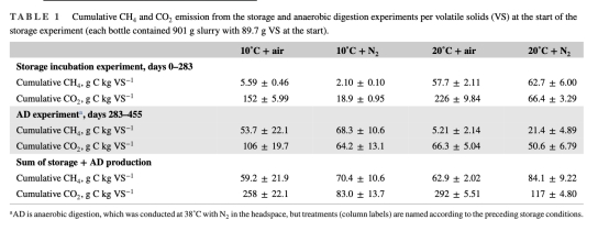 好氧條件下CO?排放顯著高于厭氧條件(20°C+空氣:226 g C kg VS?1 vs. 20°C+N?:66.4 g C kg VS?1)。