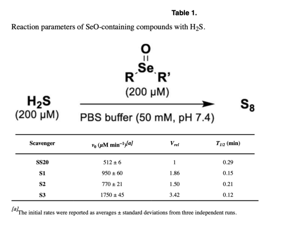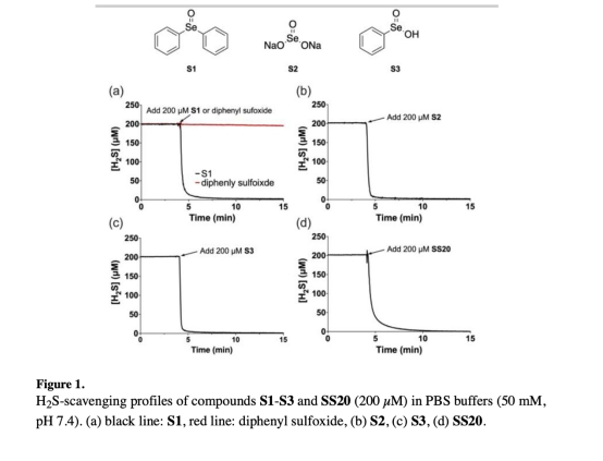基于硒氧化物(SeO)與H?S的高反應(yīng)性,篩選硒基化合物(S1-S3)作為H?S清除劑。