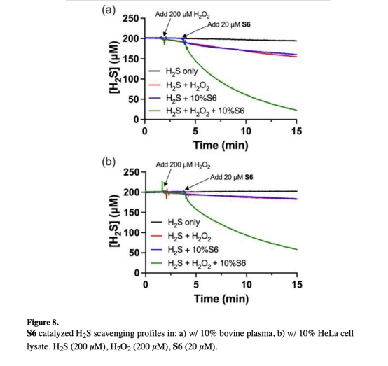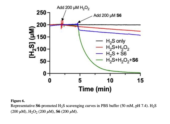 意義:光敏劑(如Eosin Y)聯(lián)合S6實(shí)現(xiàn)>95%光誘導(dǎo)H?S清除,提供時(shí)空可控的清除策略。