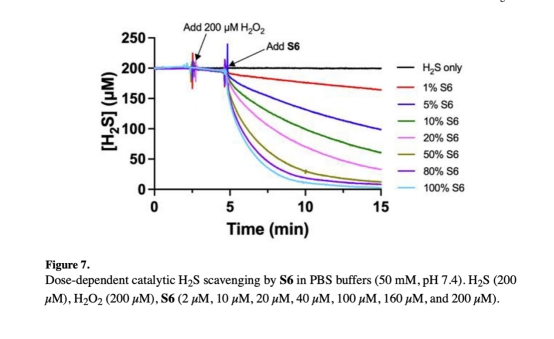 意義:量化硒化合物清除H?S的效率,確定S6在催化劑量(5-10%)下有效,為低毒性應(yīng)用提供依據(jù)。
