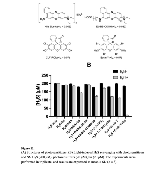 光敏劑(Eosin Y)聯(lián)合S6實(shí)現(xiàn)光控H?S清除,為精準(zhǔn)調(diào)控提供新工具。
