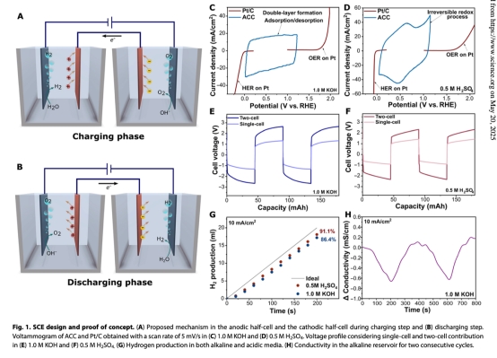 成功開(kāi)發(fā)無(wú)膜解耦電解槽,通過(guò)電容機(jī)制實(shí)現(xiàn)氫氧時(shí)空分離,適應(yīng)酸/堿環(huán)境。