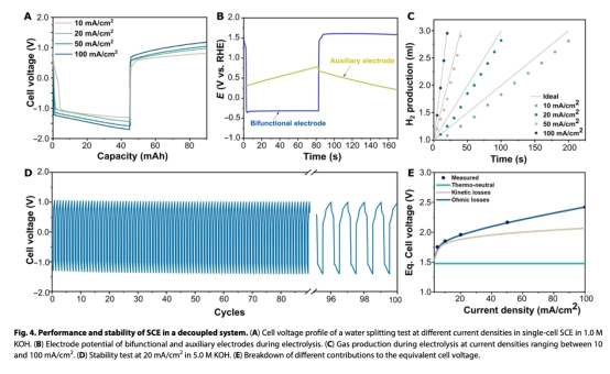 意義:電容電極的快速充放電能力支撐反應(yīng)解耦的循環(huán)穩(wěn)定性。