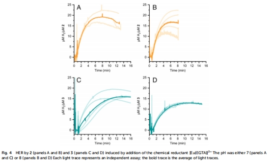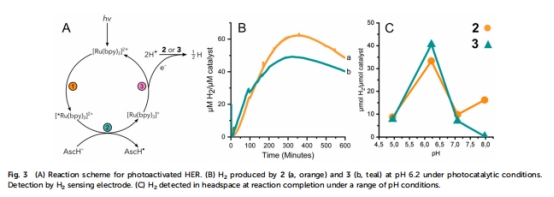在電化學、光化學([Ru(bpy)?]2?/抗壞血酸體系)和化學還原([Eu(EGTA)]2?)條件下量化產氫性能。
