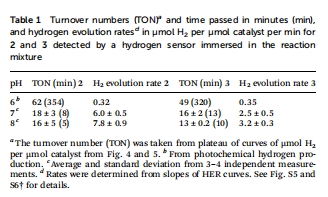 表1:基于Unisense數據的產氫速率(μmol H?/min/μmol cat)和TON。