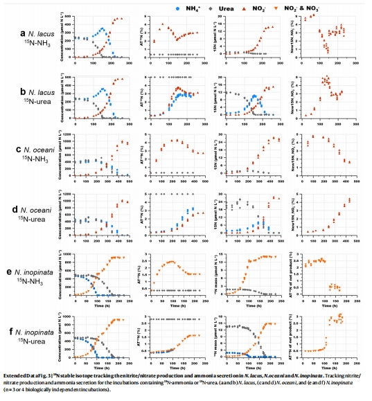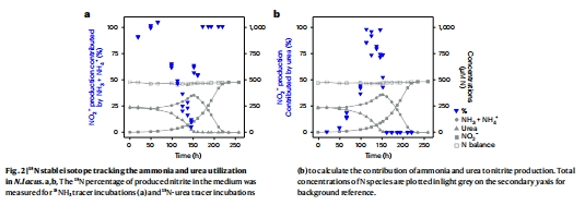 數(shù)據(jù):使用1?NH??和1?N-尿素追蹤β-AOB(N. lacus)的亞硝酸鹽來(lái)源。