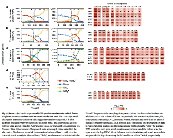 論文揭示了氨氧化微生物(AOM)在氮源利用上的分化策略: