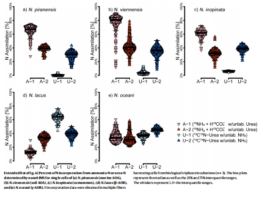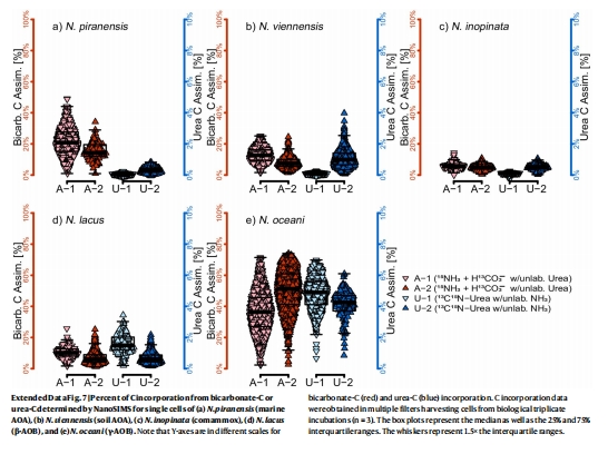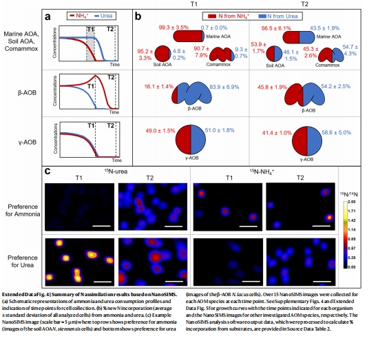 β-AOB同化的氮主要來(lái)自尿素(>80%),而非胞外氨(擴(kuò)展數(shù)據(jù)圖4b-c)。