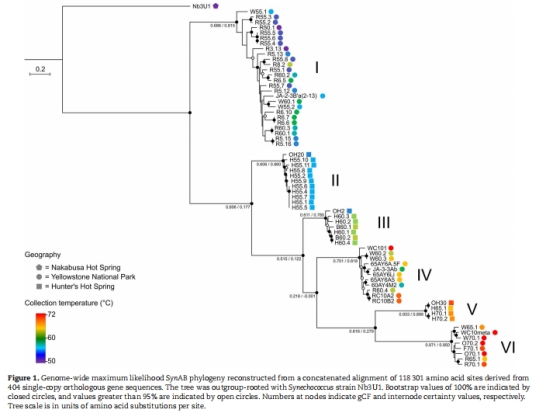 進化起源:SynAB多樣性源于單次輻射進化(非多地獨立演化),系統發育按溫度分層(Fig. 1)。
