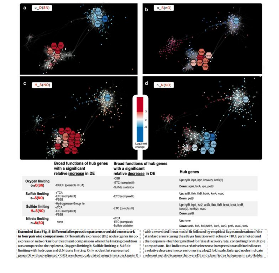 硫代謝基因在限硫/氧時下調,氫化酶與氮代謝基因上調(Fig.2b),揭示能量短缺時的代謝重塑。