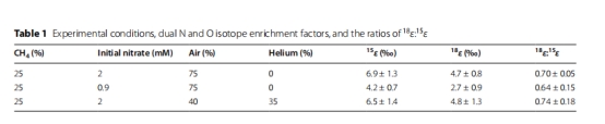 論文通過雙N-O同位素分析和動力學模型,揭示了淡水濕地細菌 Methylobacter sp. YHQ 在好氧條件下耦合 硝酸鹽同化還原(assimilatory nitrate reduction) 與 甲烷氧化(CH? oxidation) 的機制。重點研究了硝酸鹽(NO??)和氧氣(O?)濃度對氮(N)、氧(O)同位素分餾的影響,首次報道了淡水細菌的同位素分餾比值(1?ε:1?ε),并建立了定量描述反應速率的動力學模型。
