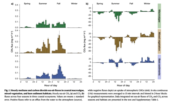 海岸帶大型藻類、混合植被和沉積物生態(tài)系統(tǒng)中甲烷排放抵消大氣二氧化碳吸收