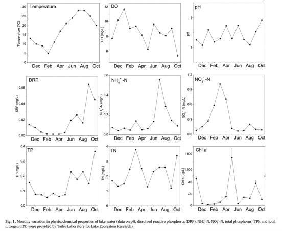研究通過太湖梅梁灣沉積物月度采樣(2018-2019),結(jié)合高分辨率孔隙水采樣技術(shù)(HR-Peeper),揭示沉積物溶解態(tài)無機(jī)氮(DIN:NH??-N、NO??-N、NO??-N)和活性磷(DRP)對藍(lán)藻水華的關(guān)鍵作用: