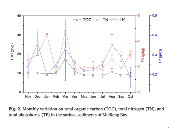 沉積物性質(zhì):TN、TP、TOC(圖2)