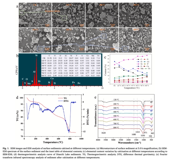材料制備:滇池沉積物經干燥、研磨后,在120–800°C下煅燒1小時。