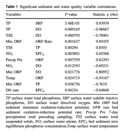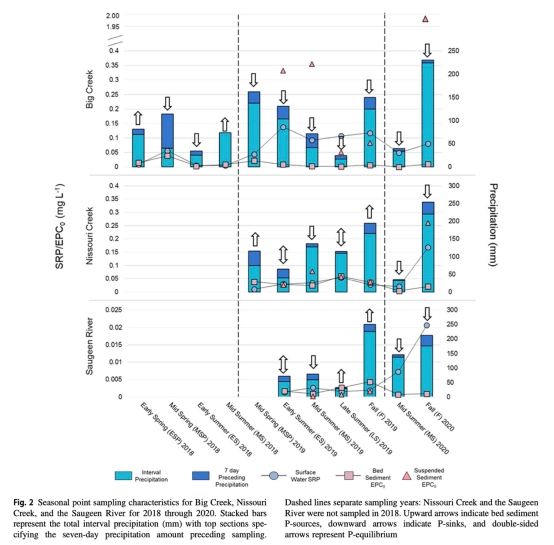Nissouri Creek底泥在2019年春季中期EPC?=0.039 mg/L(SRP的246%)。