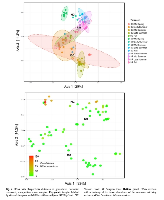 Nissouri Creek磷釋放事件中,反硝化菌(Dechloromonas, Rhodoferax)和AOA(Candidatus Nitrosocosmicus)顯著富集。