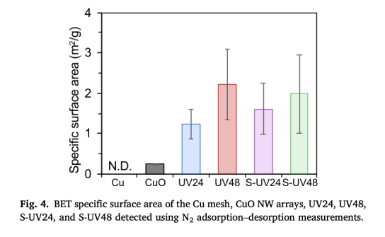 通過熱氧化法(500°C/4h)在銅網上生長CuO納米線(NWs)。
