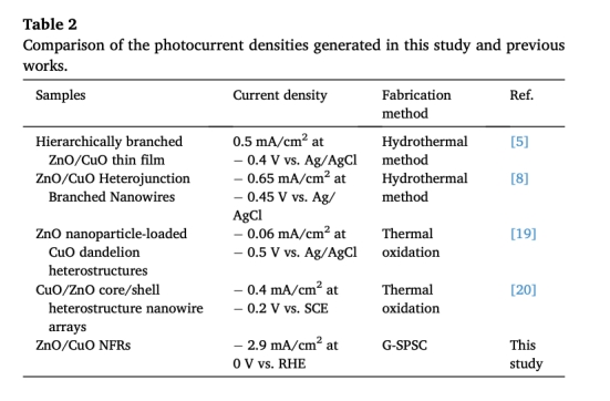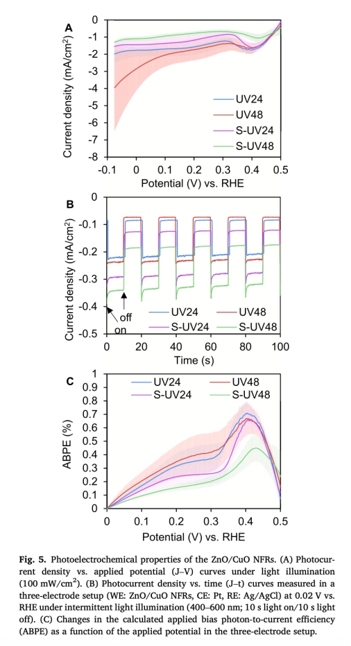 意義:證實G-SPSC法制備的ZnO/CuO NFRs具有優(yōu)異的光電轉換能力,省略濺射步驟仍保持高性能,為綠色合成提供新策略。