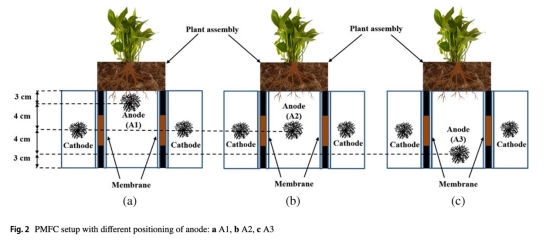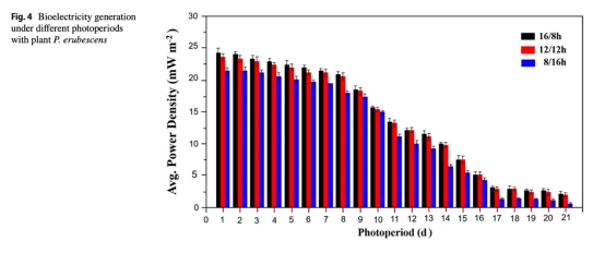 光周期、光源、生長介質、陽極位置和裝置設計對含氧還原微藻生物陰極的植物微生物燃料電池(PMFCs)性能的影響