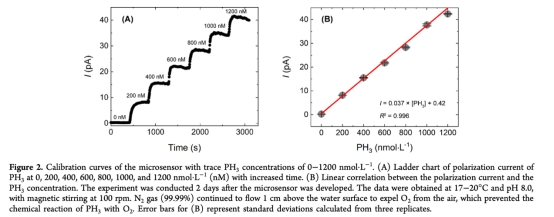 pA級電流分辨率(圖2A)實現nmol·L?1級PH?定量,克服傳統方法(如氣相色譜)無法原位監測的局限。