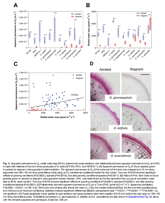 首次在稻屬中定量證明淹水誘導(dǎo)的ROL屏障強(qiáng)度差異,揭示其保守性與物種特異性。