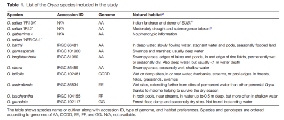 涵蓋11個(gè)稻種(8野生 + 3栽培),關(guān)注新生不定根(表1)。