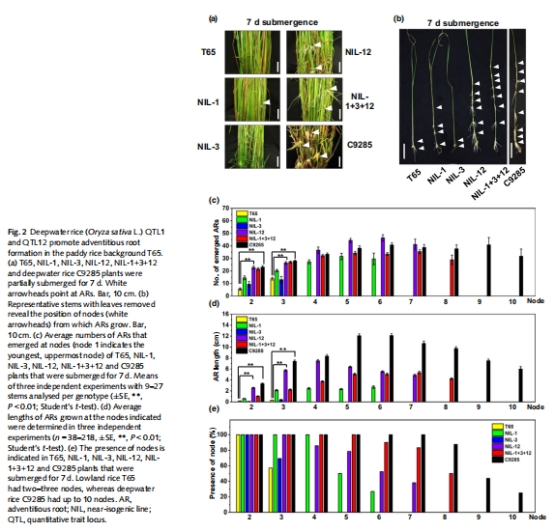 賦予深水水稻耐洪水性的數(shù)量性狀基因座調(diào)節(jié)兩種不同類型水生不定根的形成