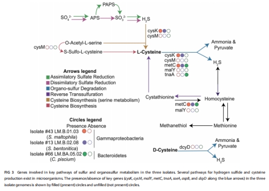 基因組基礎(chǔ):降解基因(如半胱氨酸脫硫酶相關(guān)基因)存在于菌株基因組中(圖3)。
