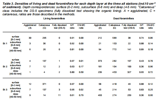 死亡群落:分析鈣質殼比例(C/T)和有機襯里占比(DS-5/C)(表3)