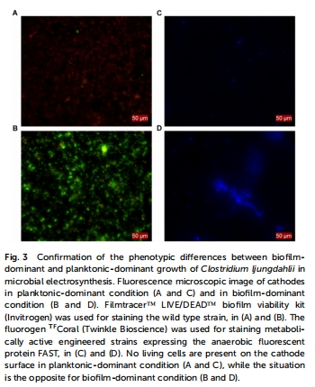 產物分析:HPLC定量有機酸/醇,熒光染色結合顯微鏡觀察生物膜(圖3C-D)。