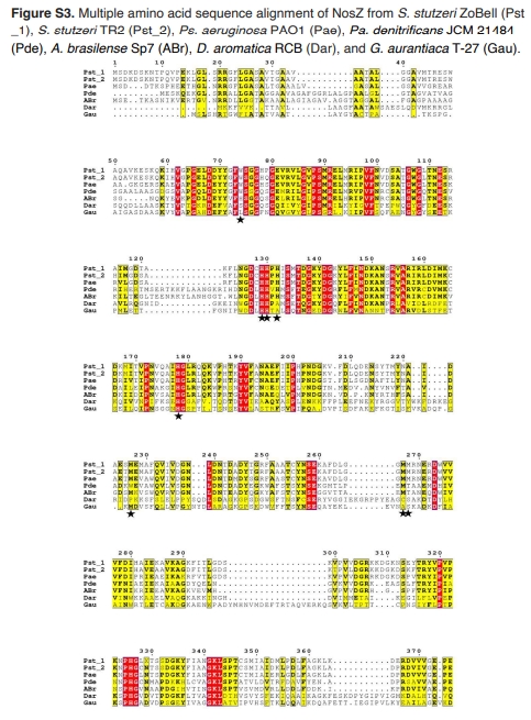 nosZ結構保守性 圖4, S2-S3 CuA/CuZ活性中心高度保守,排除結構決定氧敏感性假說