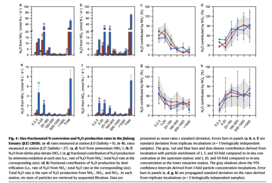 數(shù)據(jù):大顆粒(>20μm)上反硝化貢獻(xiàn)>60% N2O(圖4d,h)