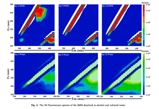 數(shù)據(jù):SMM中多糖(251.08 mg/mL)和蛋白質(zhì)(峰值126.67 μg/mL)富集;3D熒光顯示富集蛋白質(zhì)/腐殖酸(熒光強度10? vs 水體10?)