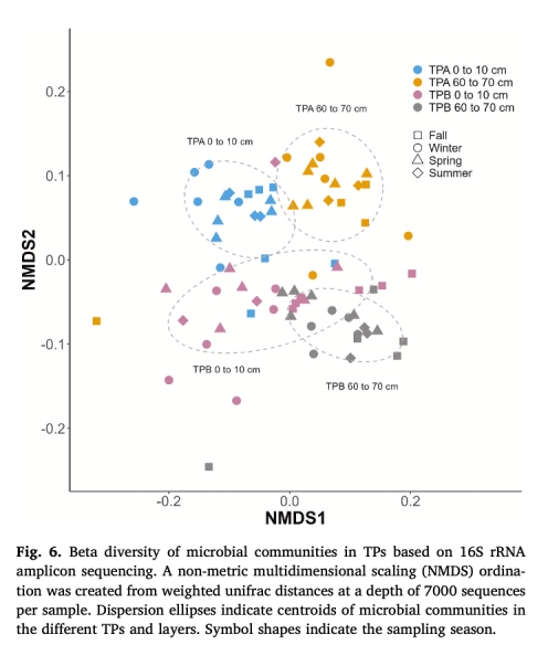 研究通過10年以上的野外監(jiān)測和實驗室實驗,探究了芬蘭拉普蘭礦區(qū)兩個處理泥炭地(TPs)在寒冷氣候(冬季冰雪覆蓋期長達7個月)下微生物群落的全年活動。核心發(fā)現(xiàn)包括: