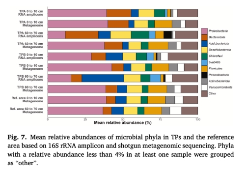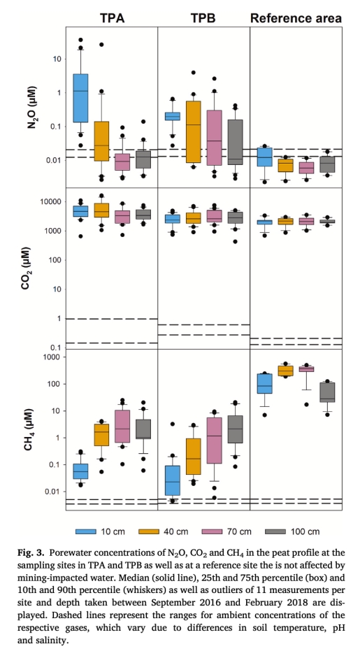 數(shù)據(jù):TPs孔隙水N?O濃度顯著高于環(huán)境(TPA為環(huán)境濃度的136倍),CH?濃度低于未受污染泥炭地。
