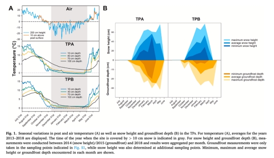 數(shù)據(jù):TPs表層泥炭(10 cm)好氧呼吸活性最高,但冬季冰蓋致缺氧。