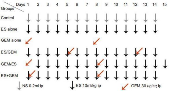 同步組:Endostar與吉西他濱同時給藥(ES+GEM)。